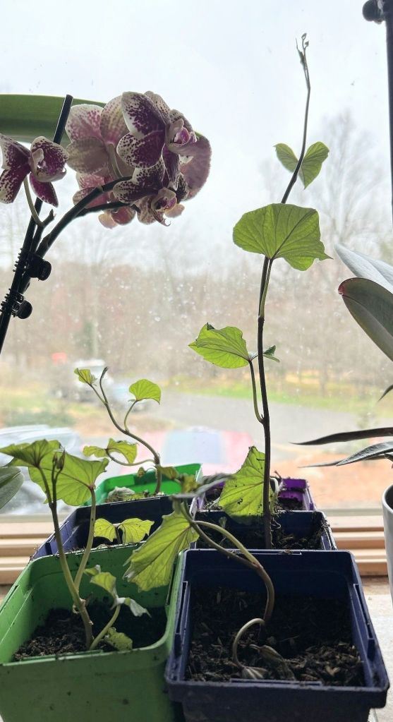 Every year I learn something new. And or I have a mysterious success in my veggie growing journey. I worked hard for the two or three sweet potatoes that I harvested last week — getting the slips started, potting then transplanting them. but I failed to mulch them and feed them and water then enough once they were established.