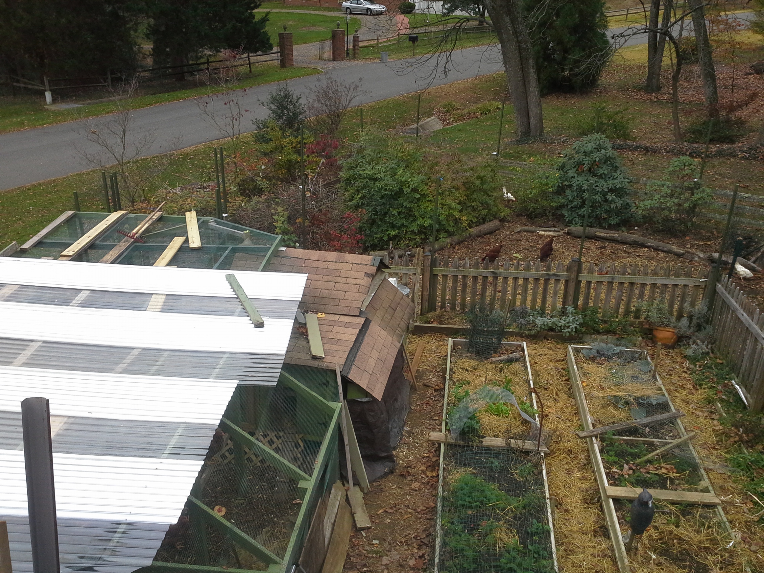 I can’t complete this post without admiring the new roof Edward has put over the run, so the hens will be dry as the winter weather starts in. Corrugated metal interspersed with corrugated plastic that will let the light through. Last winter I spread layers of plastic sheeting over the top, and that was ok – until melting days, when a hundred tiny holes let all the drips through. I have a plan to collect that water into a drum, but let’s get it roofed first. Winter Vortex, we’re ready!!